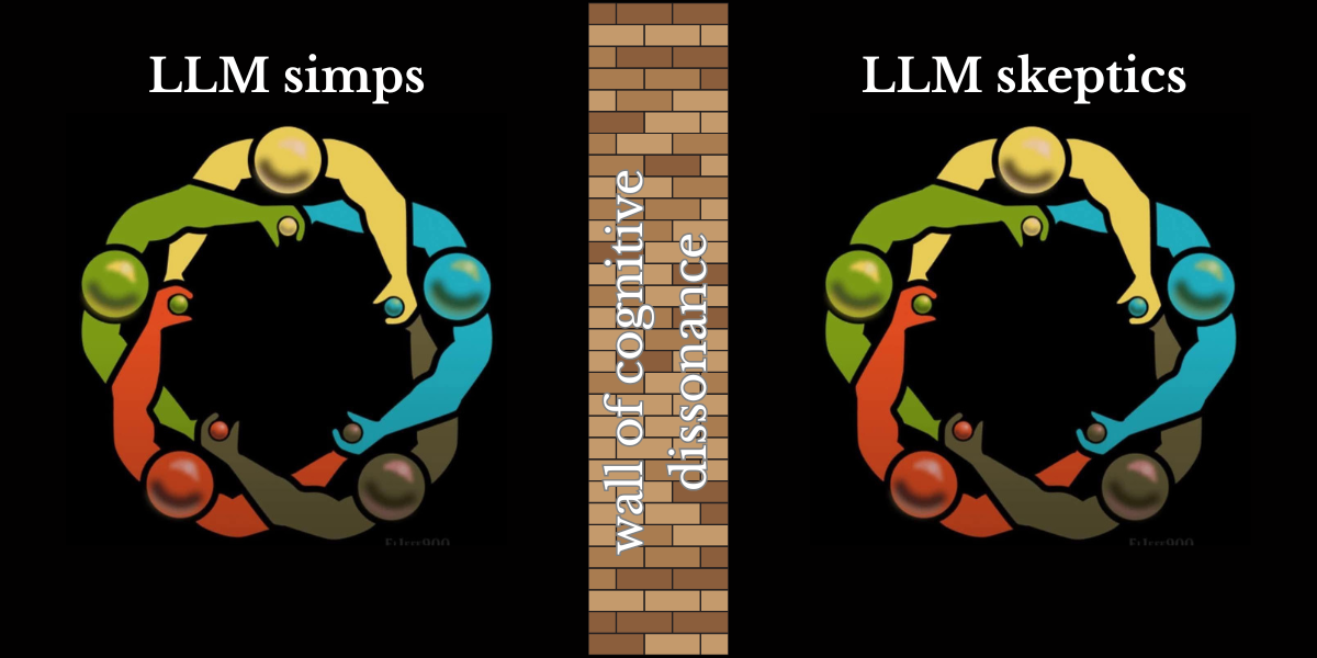 Apply this model to the LLM era, and you'll see it's more relevant than ever. People who intensely believe that LLM's are the future will find my position to not use them ridiculous, whereas I can only see how harmful LLM's are for humanity, the planet, not to speak of the awful eugenist ideology underlying them. These positions are on opposite sides of the pyramid.
