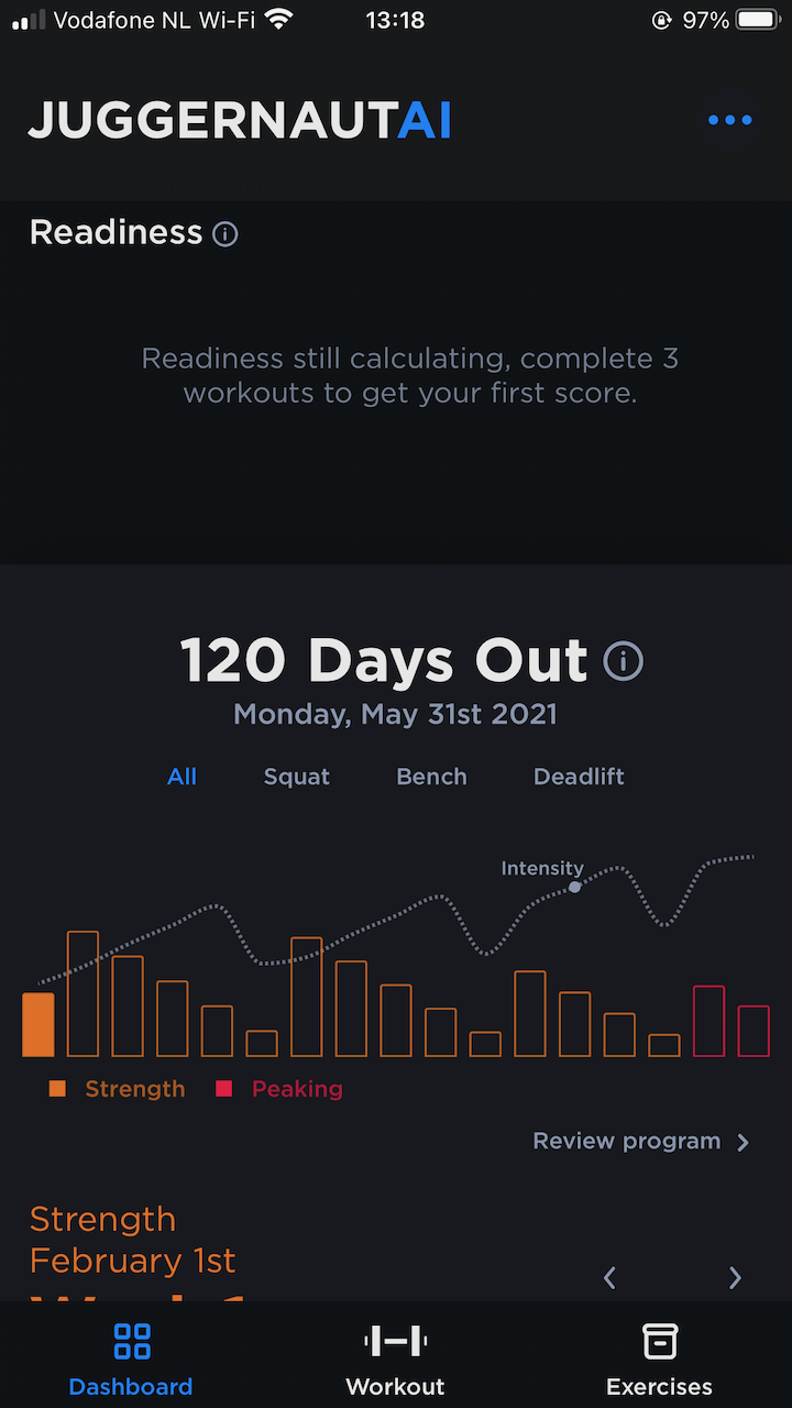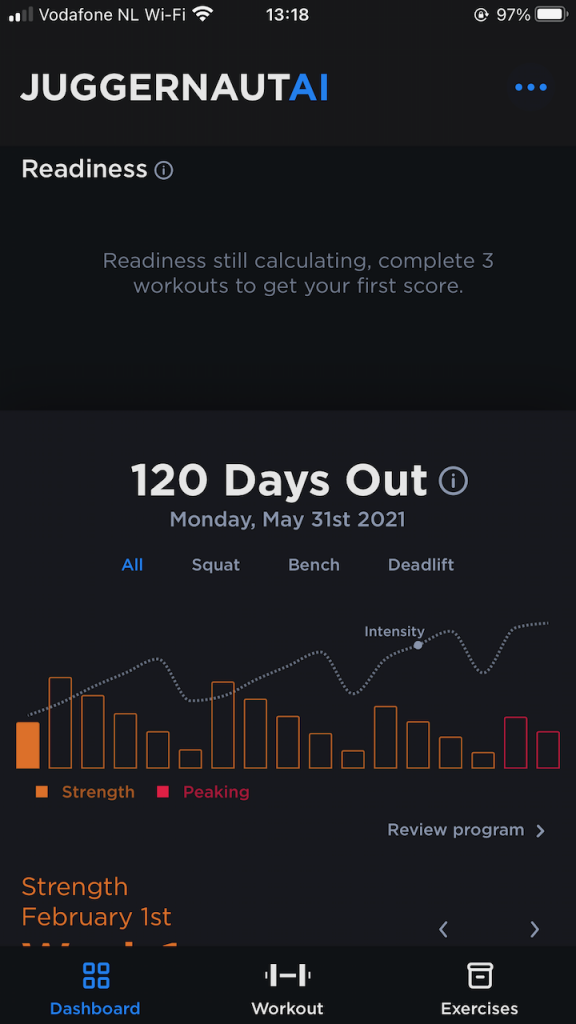 I’m going to wrap up the review for now. I think the questions they ask are super thorough and a good basis to apply automation on. So far, it’s not rocket science and I wouldn’t call it “AI” for now. The programme gets generated and your periodization gets generated. I’m really curious how the real-time adaptation will help me over the coming weeks. I’m looking forward to start using the “readiness score” (look at the top of the last screenshot). As a woman, how I feel during training changes drastically depending on where I am in my menstrual cycle and I think this will affect my readiness score as well. I will write a follow-up review after I’ve trained for a couple of weeks, so be patient.
