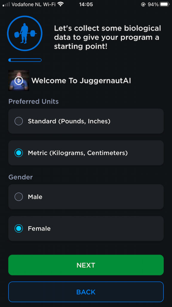JuggernautAI is a mobile application that’s designed to guide you in your powerlifting journey. A personalised programme gets generated for you by the app, based on information you feed it. As a software developer I was super curious to try this out! I think powerlifting is an ideal candidate to spice up with some AI because a big part of it is scientific and the training system can definitely be mostly automated. The real-time component with AI-adjustment of your programme based on your feedback before/during/after the workout is a great addition that can make the app extremely good.