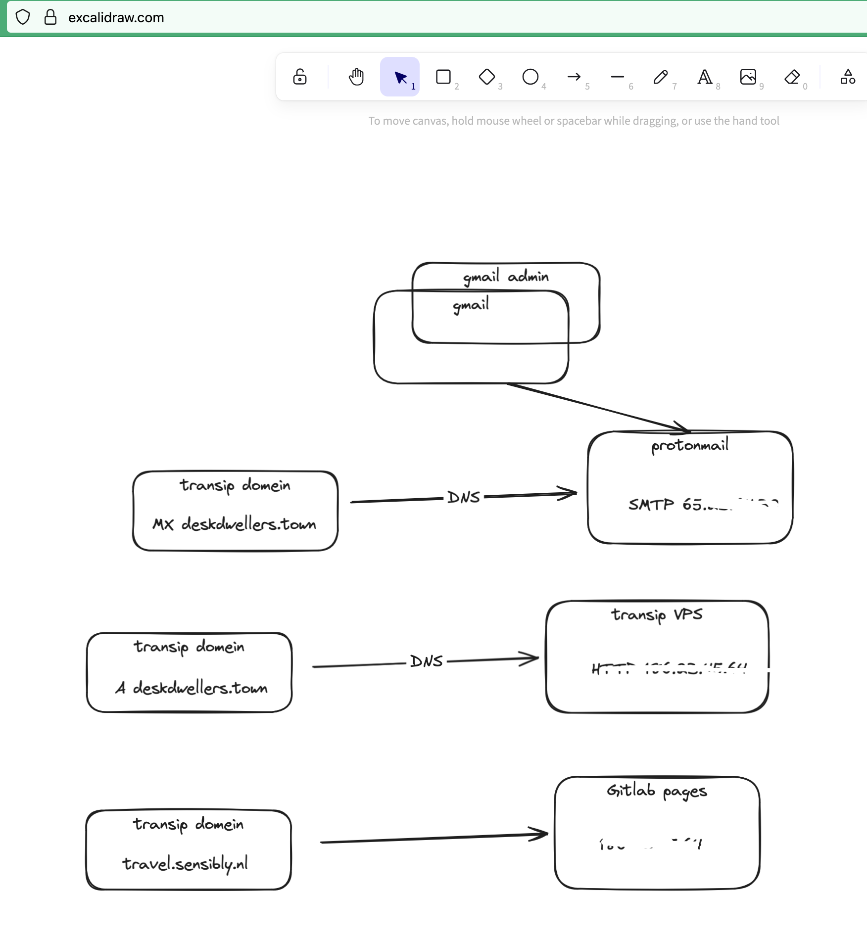 I went to https://excalidraw.com/ and was met with confusion at once. Apparently, Oliver had used this tool to share something with me that we were working on together, so I didn't get to see the homepage, but this: