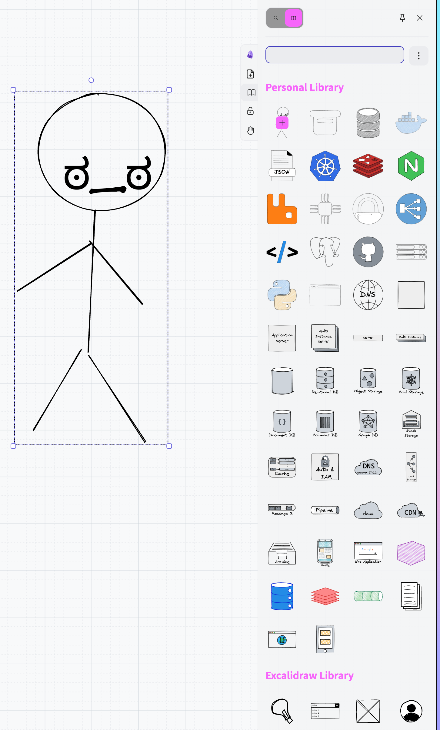 Added some libraries from the Excalidraw website, the stick figure on the left portrays how I feel right about now.