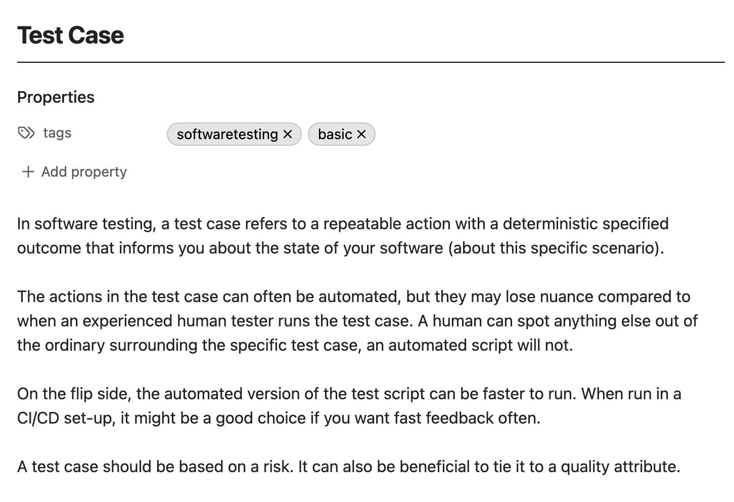 I started by writing down, in my own words, what I think encompasses a test case.