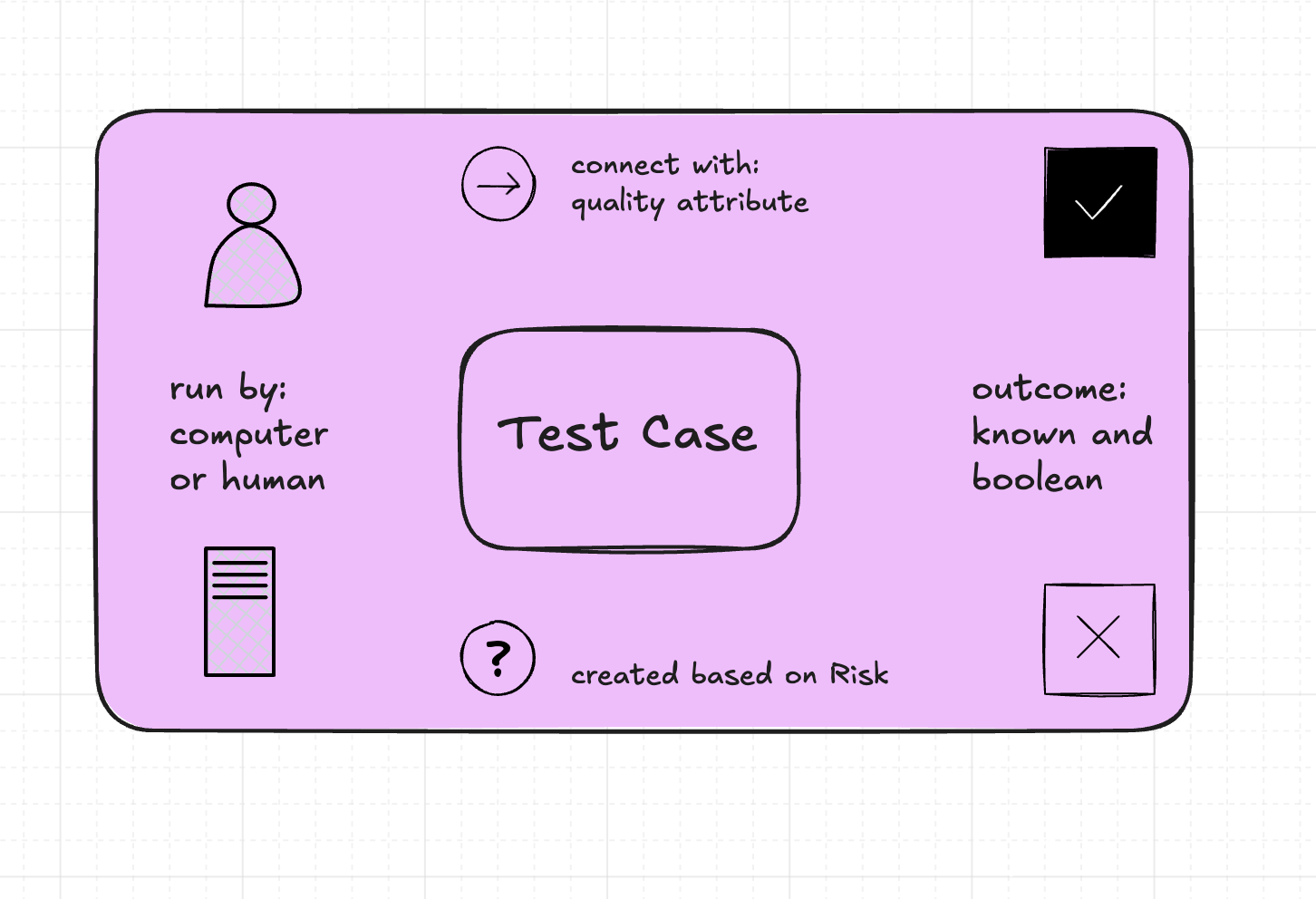 I got side-tracked by a deep need to create a first useful drawing before I even started the video. The quickest path to "value" that I see is to start working on core concepts related to software testing. An obvious conceptual building block in software testing is the test case.
